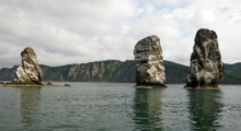 Эти уникальные природные столбы, по-другому кекуры, расположены вертикально и возвышаются над водой на разной высоте, находясь на самой границе Тихого океана и Авачинской бухты. Расстояние между ними и берегом составляет 300 метров, но подойти к трём удивительным скалам не так уж просто: вокруг царят сильные подводные течения. Три Брата появились на карте ещё в 1737 году, а в 1983-м были объявлены особо охраняемыми объектами Камчатки.