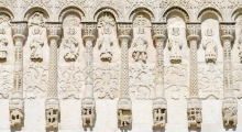 Больше всего заметно в центральном проеме западного фасада изображение царя Давида, стоящего среди страшных химер и святых ангелов. На южном фасаде основного здания храма также изображен царь Давид, но уже среди воинственных святых ангелов. Помимо Христа и Марии, других видных фигур библейской мифологии, здесь изображены Соломон, Александр Македонский, Геракл, святые воины и духовенство.