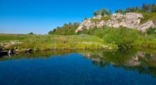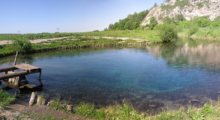 Вокруг озера стелются холмы, но на ближайшем удалении начинаются скальные отроги с многочисленными пещерами. Среди них нет крупных объектов, которые были бы интересны профессиональным спелеологам, но для начинающих туристов и альпинистов они идеальны, — небольшая сложность, хороший доступ, возможность исследования без специального оборудования.