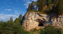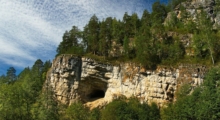 Неподалёку от Колокольной пещеры расположилась ещё одна местная достопримечательность — Майская пещера. Узкий коридор высотой в 1,5 м приводит в Молочный зал, стены и своды которого покрыты особым натёчным образованием — творожистым веществом белого цвета, который также называют «лунным молоком». В непосредственной близости от пещер находится уникальная карстовая арка, названная Кольцом.