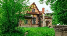 Жёлто-зелёное здание в стиле классицизма на набережной реки Крестовки – Собственная дача Его Императорского Величия. Наиболее знаменитая постройка по советской киноленте Шерлока Холмса – дача Гаусвальд. Её отличают массивная башня, портал, угловая крыша и террасы. Особняк один из первых в России выполнен из дерева в стиле модерн. В том же стиле исполнен ассиметричный особняк Фолленвейдера, известный как «Теремок».