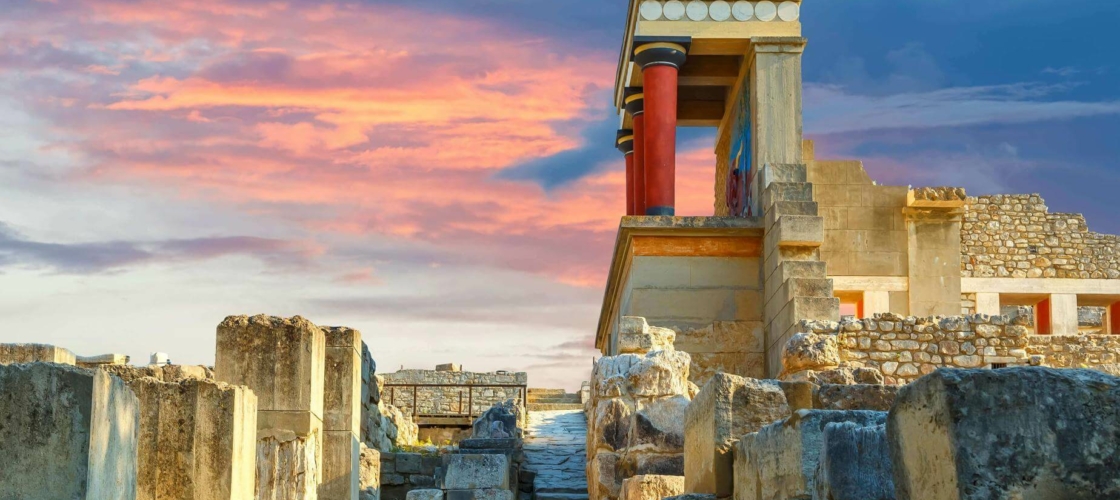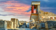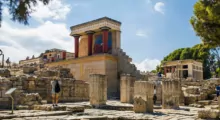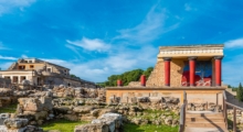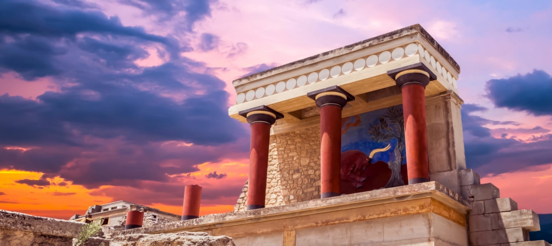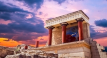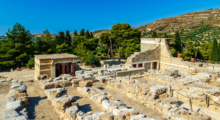 Кносский дворец — крупнейший археологический памятник минойской цивилизации, расположенный на острове Крит, недалеко от современного города Ираклион. Построенный около 2000 года до н.э., дворец служил политическим, религиозным и экономическим центром Крита. Он знаменит своей сложной архитектурой с множеством залов, коридоров, внутренних двориков и колоннад. По легенде, именно здесь находился лабиринт Минотавра.