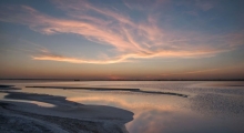 Это озеро, которое также называется Бурлинским или Розовым, еще в XVIII веке нарекли «царской солонкой». Соль добывается и сейчас, и одной из достопримечательностей водоема является поезд для перевозки соли, который передвигается по рельсам, уложенным прямо по дну. Уникальный цвет озера, в зависимости от погоды меняющийся от алого до малинового, обусловлен жизнедеятельностью артемии и микроскопических водорослей.