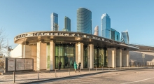 Современное здание театра, выполненное в нескольких уровнях, разместилось на берегу Москвы-реки. На его крыше были разбиты цветники. Снаружи фасад облицован натуральным камнем с добавлением панелей из алюминия и стали. Внутреннее убранство было выполнено согласно требованиям великого мастера. Здесь расположены две просторные сценические площадки, оборудованы два зрительных зала.