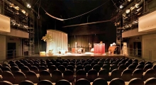 Большой зал рассчитан на 450 зрителей, он представляет собой настоящий театр, снабжённый ложами, амфитеатром и партером. Движущаяся авансцена способна установить оркестровую яму, или максимально заглубить её, если предполагается всё действо развернуть прямо в зале. Малый зал может вместить 150 зрителей, выполнен он в два яруса. Здесь стоит комплекс механизмов, которые способен полностью изменить параметры зала.