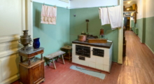 Это репродукция знаменитой работы советского фотомастера Моисея Наппельбаума. Сама арка является творческим пространством для всех желающих оставить здесь цитату из произведений Анны Ахматовой или собственные стихи. Бывает, что надписи переполняют стену, и тогда музейные работники делают фото и освобождают место для свежих. Отсюда гость музея следует к лестнице со старинными перилами, поднимается к двери квартиры 44, и попадает в прихожую.