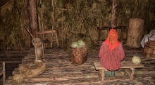 При входе в избу туристов встречает радушная хозяйка в национальном русском костюме — в данном случае стилистика одежды перекликается с нарядами новгородских крестьянок. Она показывает своё жилище и ведёт разговор от имени жительницы тех времён. Посетители знакомятся с её бытом, огородом, сеновалом и стойлом для животных. Подобный формат является одним из наиболее популярных и востребованных.