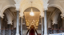 При отделке интерьеров Штакеншнейдер прибег к различным стилям, предпочитая барокко и Ренессанс. Особенно его талант проявился в разработке плана парадной лестницы, ставшей эталоном для всех архитекторов XIX века. Пологая беломраморная лестница, украшенная картинами Н. Тихобразова, динамично разветвляясь на два марша, словно раздвигает пространство. Каждый этаж был оформлен оригинальными скульптурными вставками.