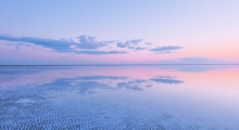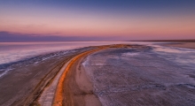 Озеро Эльтон — один из самых необычных природных памятников России, и увидеть фантастические пейзажи этого места хотя бы раз в жизни должен каждый. Главная особенность водоёма заключается в том, что, в зависимости от сезона, он имеет золотисто-розовый или красноватый цвет. Кроме того, в летние месяцы озеро мелеет настолько, что можно пройти по нему от одного берега до другого: в это время его средняя глубина составляет всего 10 см.