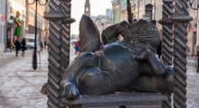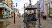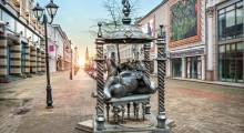 Колоритную фигуру Кота Казанского обойти стороной не получится, поскольку расположилась она прямо на пересечении улиц Баумана и Мусы Джалиля — месте, которое называют «казанским Арбатом». Параметры скульптуры не могут не впечатлять — фигура усатого хитреца составляет почти 1,5 метра в высоту, а вся композиция достигает 3 метров в высоту и 2,8 метра в ширину. У памятника часто устраиваются фотосессии.