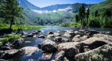 1 159 4 0 7 мин. на чтениеНазвание туристического района Поднебесные Зубья происходит от названия хребта Тигер-Тыш, пришедшего к нам из тюркского языка. «Поднебесные Зубья» является топонимом-калькой, так как «Тигер-Тыш» дословно переводится как «небесные зубья» или «поднебесные зубья». Тигер-Тышем называется хребет, который расположен в южной части Кузнецкого Алатау, соединяющего горные гряды, вытянутые в разных направлениях.