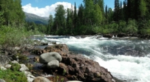 В восточной части хребта Кузнецкий Алатау, на территории Кемеровской области, находится гора Верхний Зуб, возвышающаяся на 2178 метров над уровнем моря, а высота плато, именуемого Старой Крепостью и располагающегося в Хакасии, достигает отметки в 2217 метров над уровнем моря. У истоков горных рек, в карах привершинных частей гор, лежат морены. Поблизости могут встречаться и небольшие ледники.