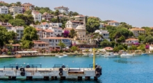 Жизнь здесь кипит с начала лета: прибывающие туристы и турки увеличивают численность острова до 50 тысяч человек. Береговую линию разрезают четыре порта, вокруг раскиданы небольшие островки. Природа здесь пышет красками и находится в симбиозе с рукотворными достопримечательностями: монастырским комплексом розового цвета, византийской церковью XIV века, еврейской синагогой, греческой семинарией и музеями.