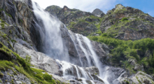 Водопады на горе София — вторые после голубых озёр претенденты на звание визитной карточки Архыза. Величественные и широкие, они особенно красивы летом, когда тает Софийский ледник. Срываясь с 90-метровой высоты, они дают начало бурной реке Софии. Маршрут к водопадам начинается от небезызвестной Ледниковой Фермы, преодолеть его можно пешком либо на внедорожнике. Во время путешествия можно увидеть горных яков, собрать ягоды и грибы.