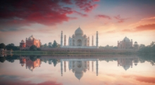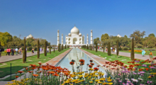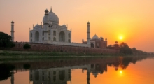 Тадж-Махал, или «Тадж» — это мемориальный комплекс в городе Агре, сооружённый в стиле времён империи Великих Моголов. Мавзолей был возведён в первой половине XVII века по указу Шах-Джахана I, желавшего увековечить память об усопшей любимой супруге Мумтаз-Махал. Считается одним из самых значительных архитектурных объектов мира, входит в список ЮНЕСКО и «Новых семи чудес света».