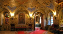 Теремной дворец – первое жилое здание из камня с анфиладной планировкой в России. Его построили на территории Московского Кремля в начале XVII века по указу Михаила Фёдоровича. Оно выполняло роль парадных покоев семьи царя. Сегодня Теремной дворец является памятником архитектуры и объектом культурного наследия. Он известен как часть дворцово-паркового ансамбля Большого Кремлёвского дворца и резиденция президента России.