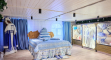 На втором этаже находится спальня с большой кроватью и множеством причудливых подушек и валиков. Окна завешены прозрачными шторами со снежинками. Рядом расположен кабинет Деда Мороза, где он готовит подарки всем детям, написавшим ему письма. Бесконечные полки полностью заполнены новогодними свёртками и коробками. На столе стоят искусственная белая ель и статуэтки сказочных персонажей.