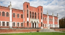 Автором проекта дворца стал Михаил Доримедонтович Быковский, ученик Жилярди. Круглые башни-караульни, стена с бойницами и въезд с аркой — именно его разработки. Эти объекты гармонично соединили классический стиль внутренней части с самим зданием. Убедиться в этом можно, посетив усадьбу, — усилиями реконструкторов она поддерживается именно в этом виде.