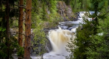 Бурлящие воды Кивача находятся в одноимённом заповеднике на юге Карелии. Название водопада происходит от финского слова «kiivas» — «стремительный». При посещении известной достопримечательности в первую очередь бросается в глаза мощь водных потоков. Ландшафт водопада становится ещё более живописным весной из-за притока Суны, таяния ледников. Вода имеет лёгкий жёлтый оттенок из-за высокого содержания торфа.