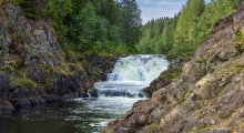 Водопад Кивач в Карелии — основной экскурсионный объект. В честь него был назван весь природный комплекс. Каскад образован четырёхступенчатой грядой из магматической породы — диабаза. До строительства ГЭС водопад считался одним из самых мощных в России. Сейчас высота общего падения воды — около 10 метров, глубина реки у подножья каскада — 8 метров в половодье.