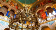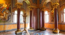 Мраморные ступени поднимаются к месту, где должен был стоять трон Людвига II. Стены зала расписаны образами Бога, святых угодников, Девы Марии и других. Над тронной площадкой на стену также нанесены образы нескольких правителей Европы, причисленных к лику святых. Арки украшены разнообразными узорами. С купольного потолка, усыпанного золочёными звёздами, свешивается массивная бронзовая люстра, покрытая позолотой.